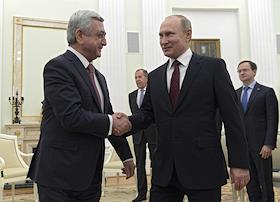 Президент России Владимир Путин встретился с президентом Армении Сержем Саргсяном в Кремле.