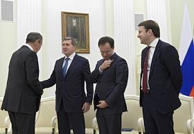 Министр экономического развития России Максим Орешкин (справа) перед началом встречи президента…