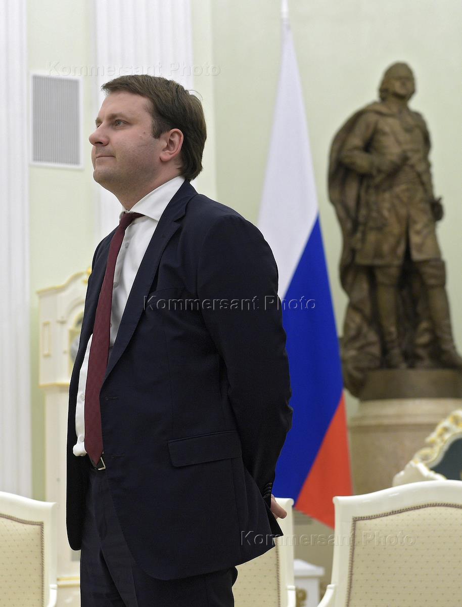 Министр экономического развития России Максим Орешкин перед началом встречи президента России…