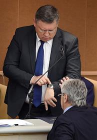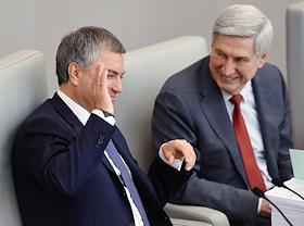 Дополнительное заседание Государственной думы (ГД) России. Слева направо: заместитель председателя…