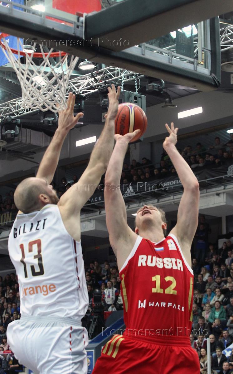 Баскетбольный матч между сборными России и Бельгии.