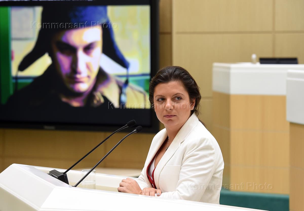 Заседание Совета Федерации (СФ) России. Главный редактор телеканала RT, главный редактор…