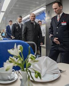 Президент России Владимир Путин (второй справа) и президент компании "Российские железные дороги"…