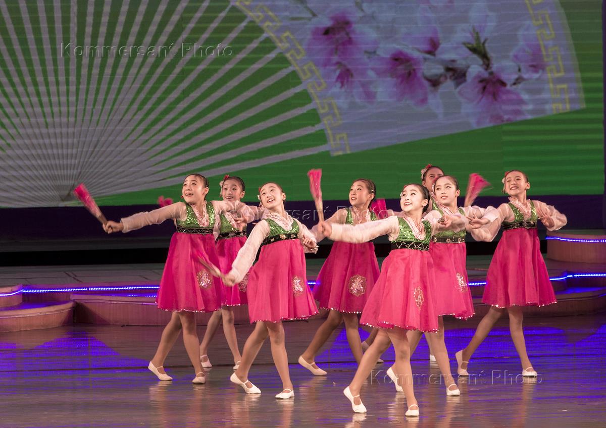 Женщины Северной Кореи. Школьницы танцуют на смотровом концерте во Дворце пионеров, который…
