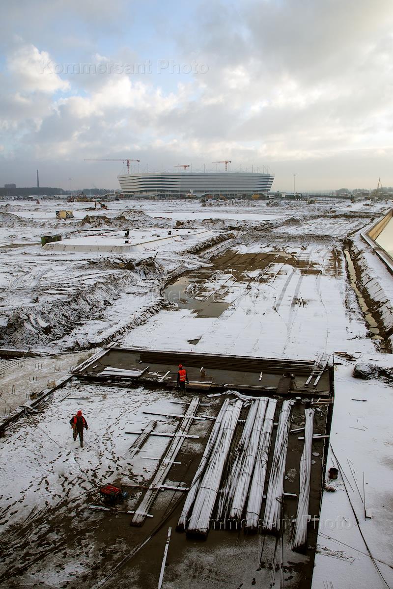 Строительство стадиона "Калининград", на котором пройдут матчи Чемпионата мира по футболу 2018 года.