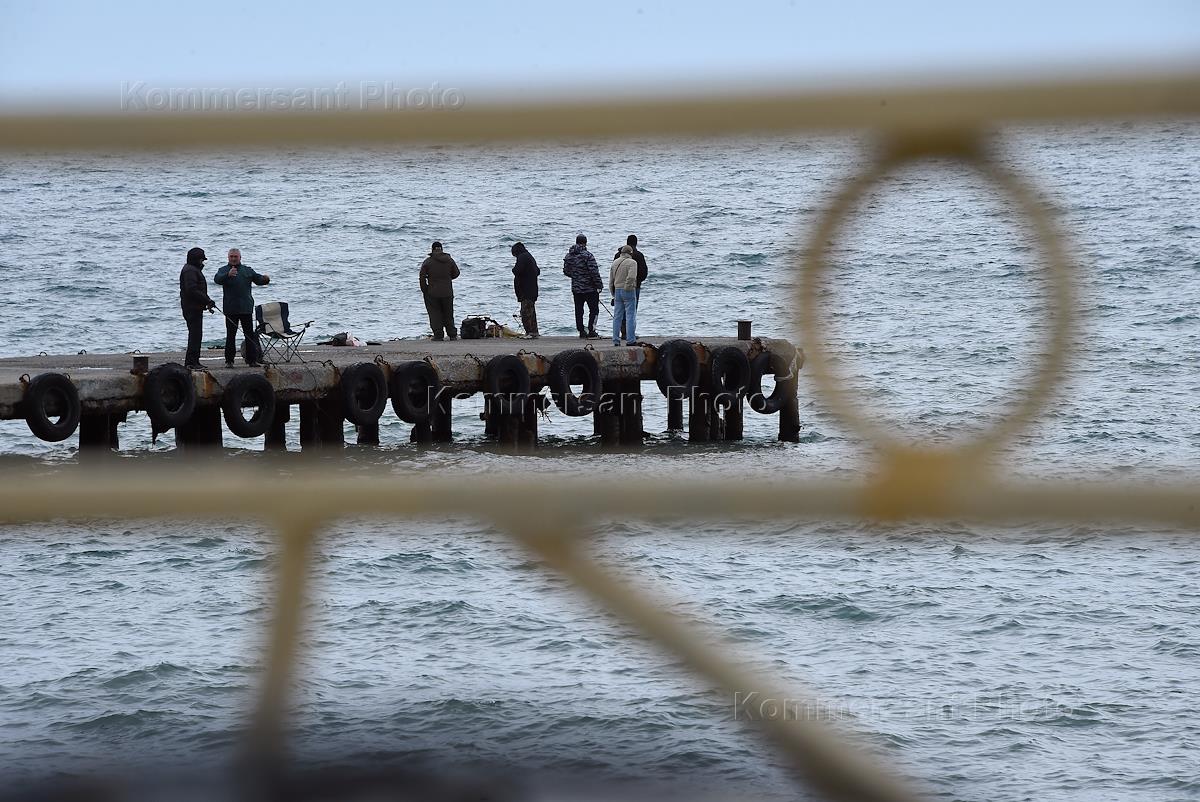 Виды Ялты. Рыбаки на пирсе.