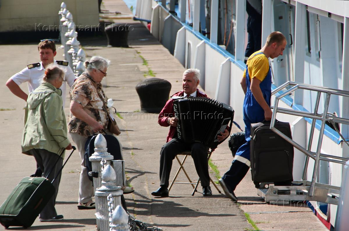 Северный (Химкинский) речной вокзал. Посадка туристов на круизный теплоход.