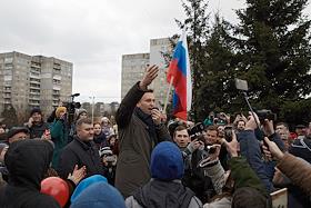 Оппозиционер Алексей Навальный во время агитационной поездки в Калининград.