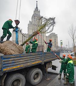 Высадка деревьев на Садовом кольце в районне площади Красных ворот.