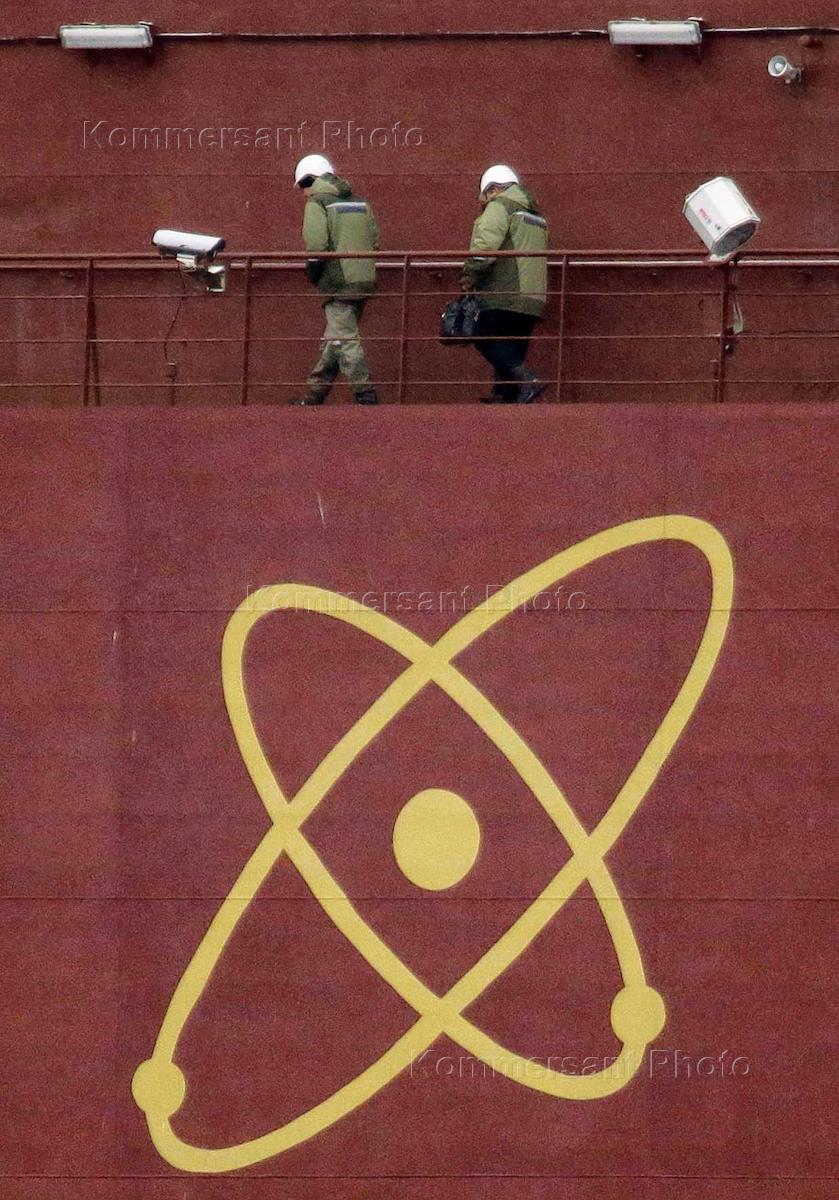 Плавучая атомная электростанция "Академик Ломоносов". Эмблема корпорации "Росатом" на борту…