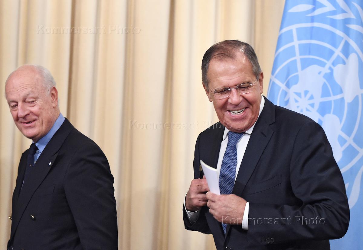 Политика Встреча Министра иностранных дел Российской Федерации Сергея Лаврова со специальным представителем Генерального секретаря ООН по Сирии Стаффаном де Мистурой при участии Министра обороны Российской Федерации Сергея Шойгу, в Доме приемов МИД России.