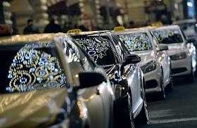 Жанровая фотография. Отражение огней в стеклах автомобилей "такси".