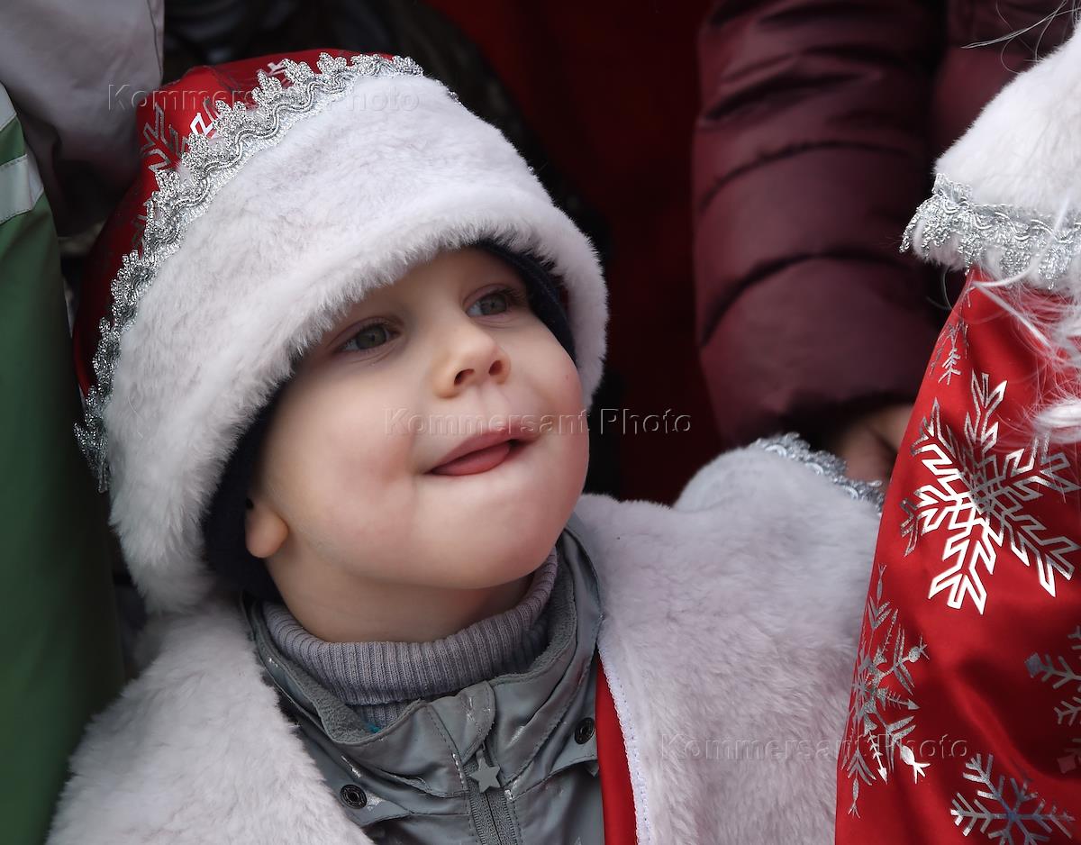 Парад Дед Морозов "Мороз-Парад" прошел по городской набережной. Дети в костюмах Деда Мороза во время…