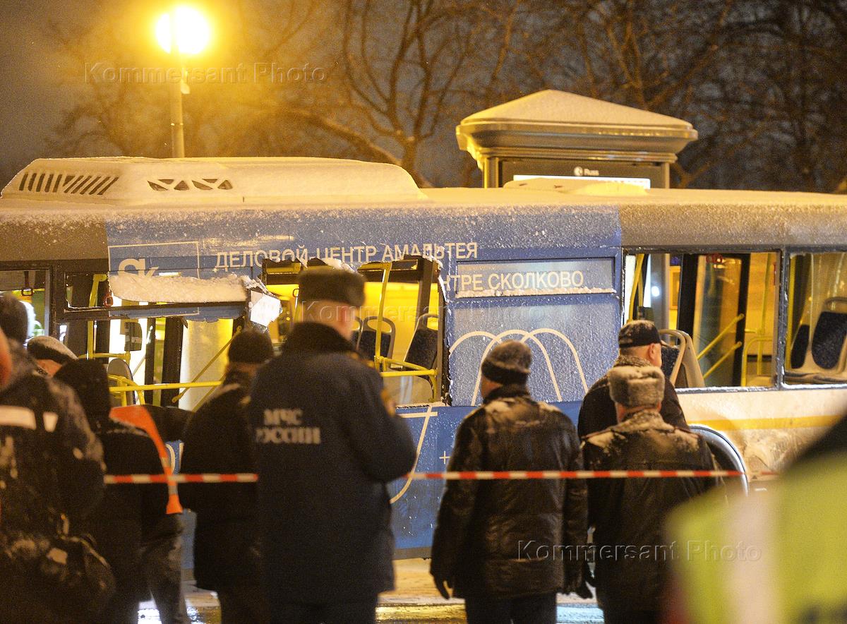 Сотрудники МЧС России и полиции на месте ДТП с автобусом на Славянском бульваре. Автобус одинцовской…