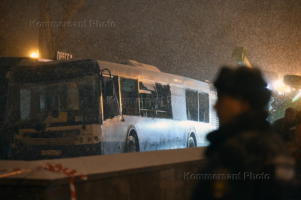Сотрудники полиции на месте ДТП с автобусом на Славянском бульваре. Автобус одинцовской транспортной…