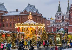 Виды Москвы. Новогоднее убранство города. Ярмарка на Манежной площади.