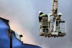 Пожар складских помещений на Камской улице в Калининграде. Пожарные во время тушение склада с…