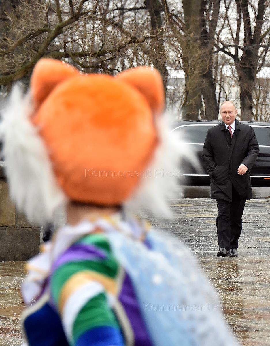 Политика Президент России Владимир Путин во время встречи с детьми, приехавшими на Общероссийскую новогоднюю елку в Кремль. Встреча прошла на Соборной площади Московского Кремля.