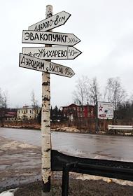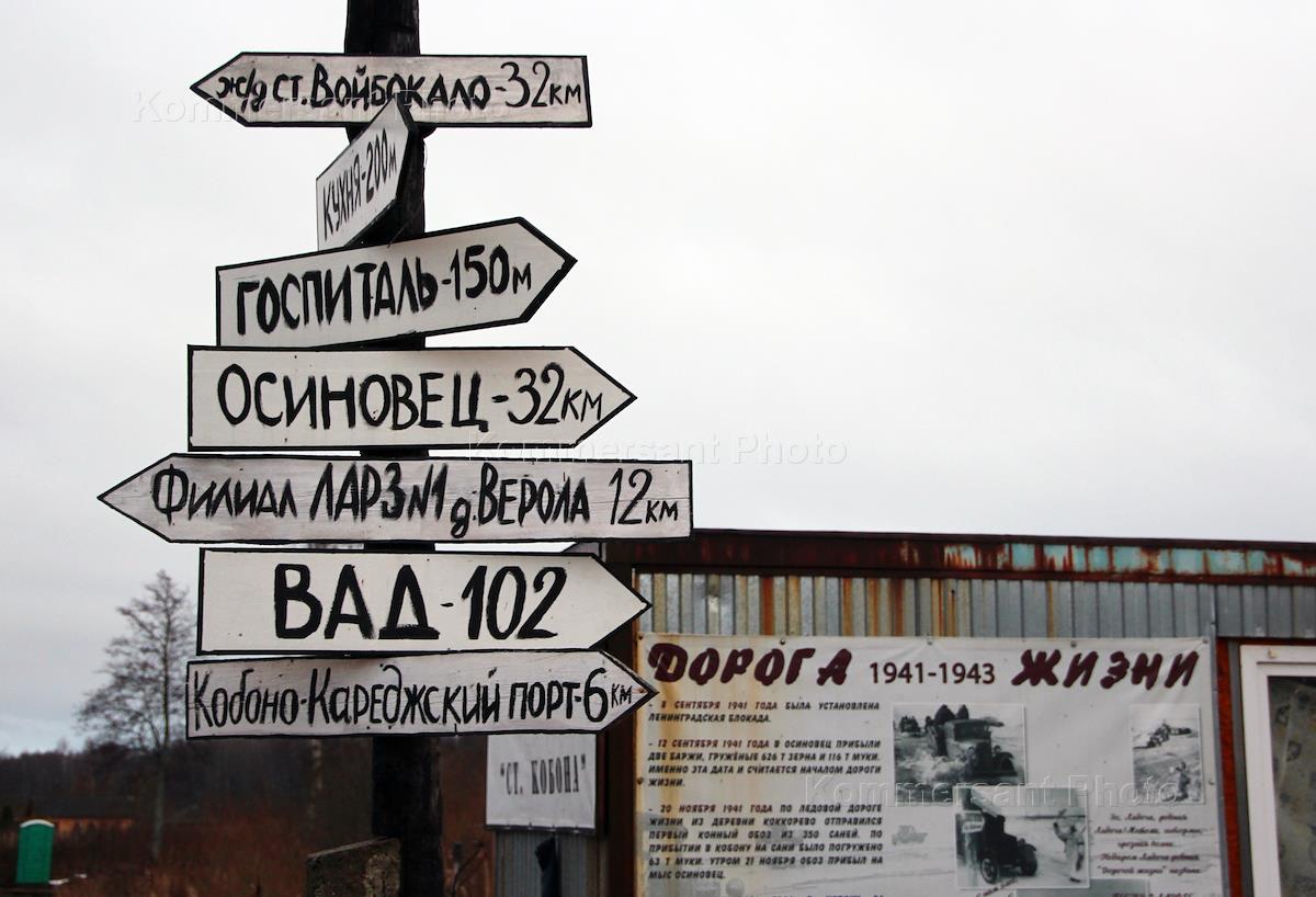 Виды деревни Кобона. Военно-исторический центр "Дорога жизни". Дорожный указатель военного времени…