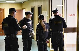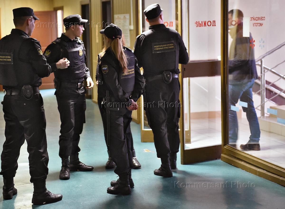 Жанровая фотография. Сотрудники Федеральной службы судебных приставов в холле Пресненского суда.