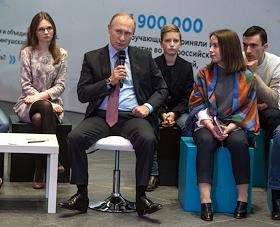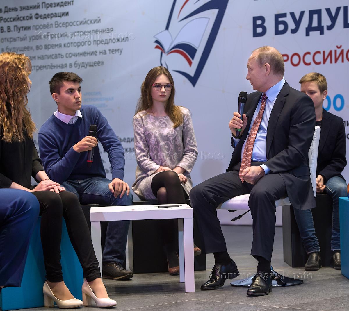 Политика Президент России Владимир Путин встретился со школьниками – авторами лучших сочинений на тему "Россия, устремленная в будущее" в парке "Зарядье".