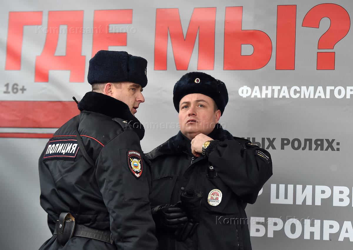 Прощание с артистом Михаилом Державиным в "Театре Сатиры". Жанровая фотография. Сотрудники полиции…