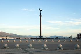 Виды Новороссийска. Стела "Морская слава России" на набережной имени адмирала Серебрякова.
