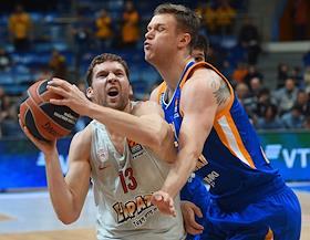 Евролига по баскетболу. Матч между командами "Химки" (Химки, Россия) - "Олимпиакос" (Пирей, Греция) в спортивном комплексе "Арена-Мытищи".