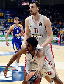 Евролига по баскетболу. Матч между командами "Химки" (Химки, Россия) - "Олимпиакос" (Пирей, Греция) в спортивном комплексе "Арена-Мытищи".