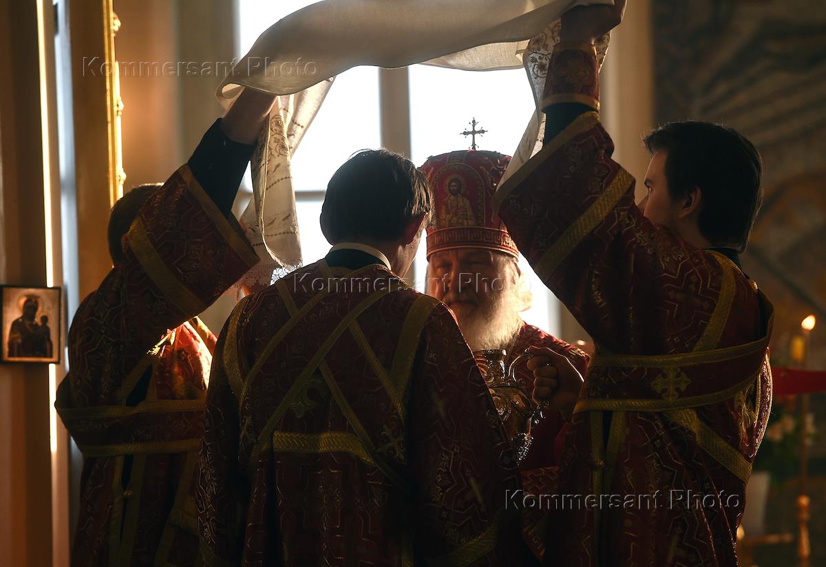 Патриарх Московский и Всея Руси Кирилл во время литургии в Храме Святой мученицы Татианы при…