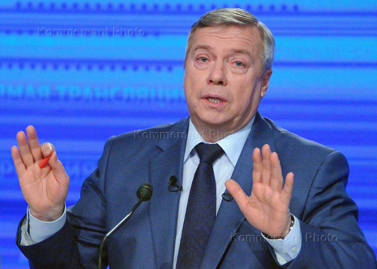 Губернатор Ростовской области Василий Голубев во время пресс-конференции, посвященной итогам года, в студии ГТРК "Дон-ТР".