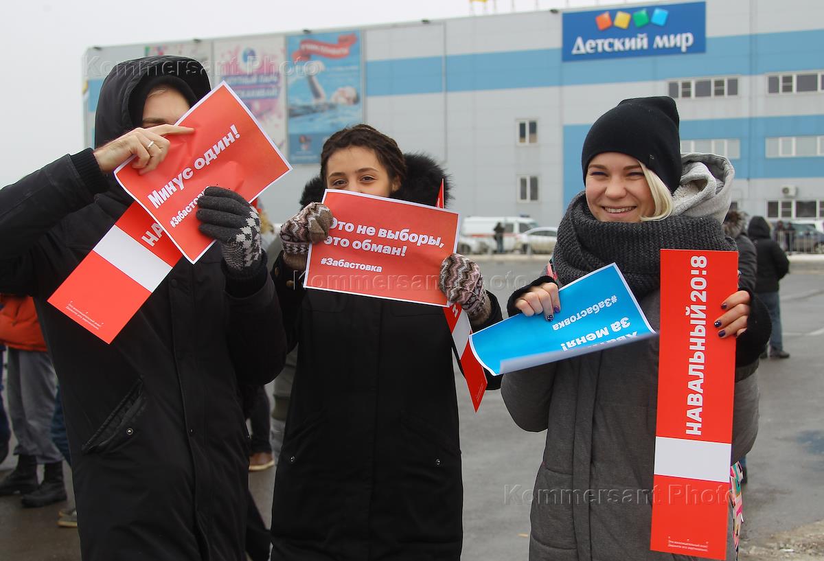 Общество Акция в рамках "забастовки избирателей", которую объявил Алексей Навальный после того, как ЦИК отказал ему в регистрации на выборах президента РФ в Ростове на Дону.