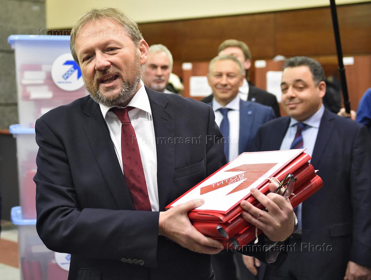 Политика Председатель партии "Партия роста", уполномоченный при президенте России по защите прав предпринимателей Борис Титов во время сдачи подписей в поддержку своей регистрации на выборах президента России в Центральной избирательной комиссии (ЦИК) России.