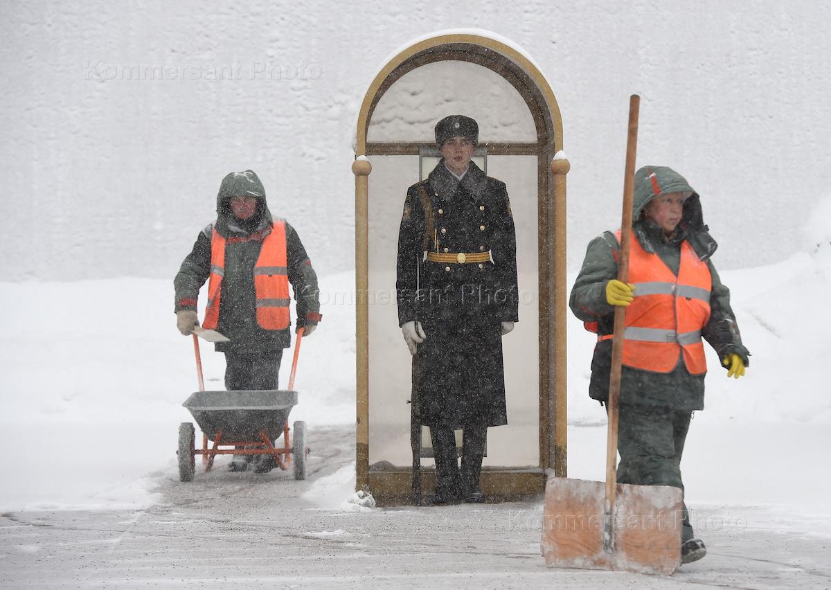 Жанровая фотография. Снегопад в городе. Почетный караул у мемориала "Могила Неизвестного солдата" в…