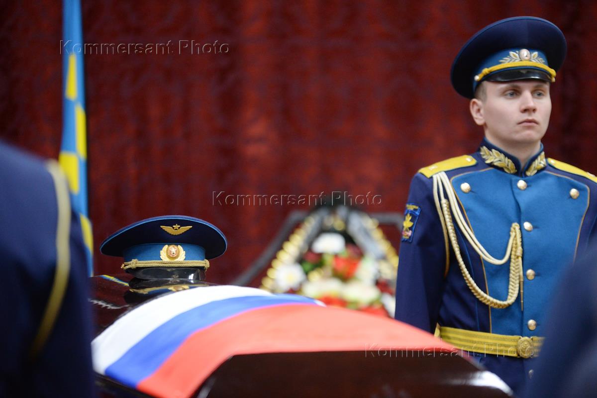 Церемония прощания с погибшим в Сирии военным летчиком самолета Су-25, Героем России Романом…