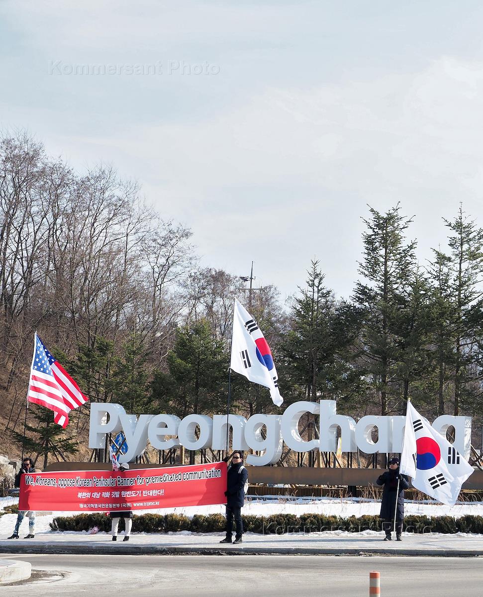 XXIII Зимние Олимпийские игры в Пхенчхане. Участники акции протеста против участия КНДР в Олимпиаде…