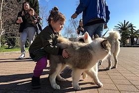 Виды Адлера - один из городских микрорайонов города Сочи. Девочка играет со щенком.
