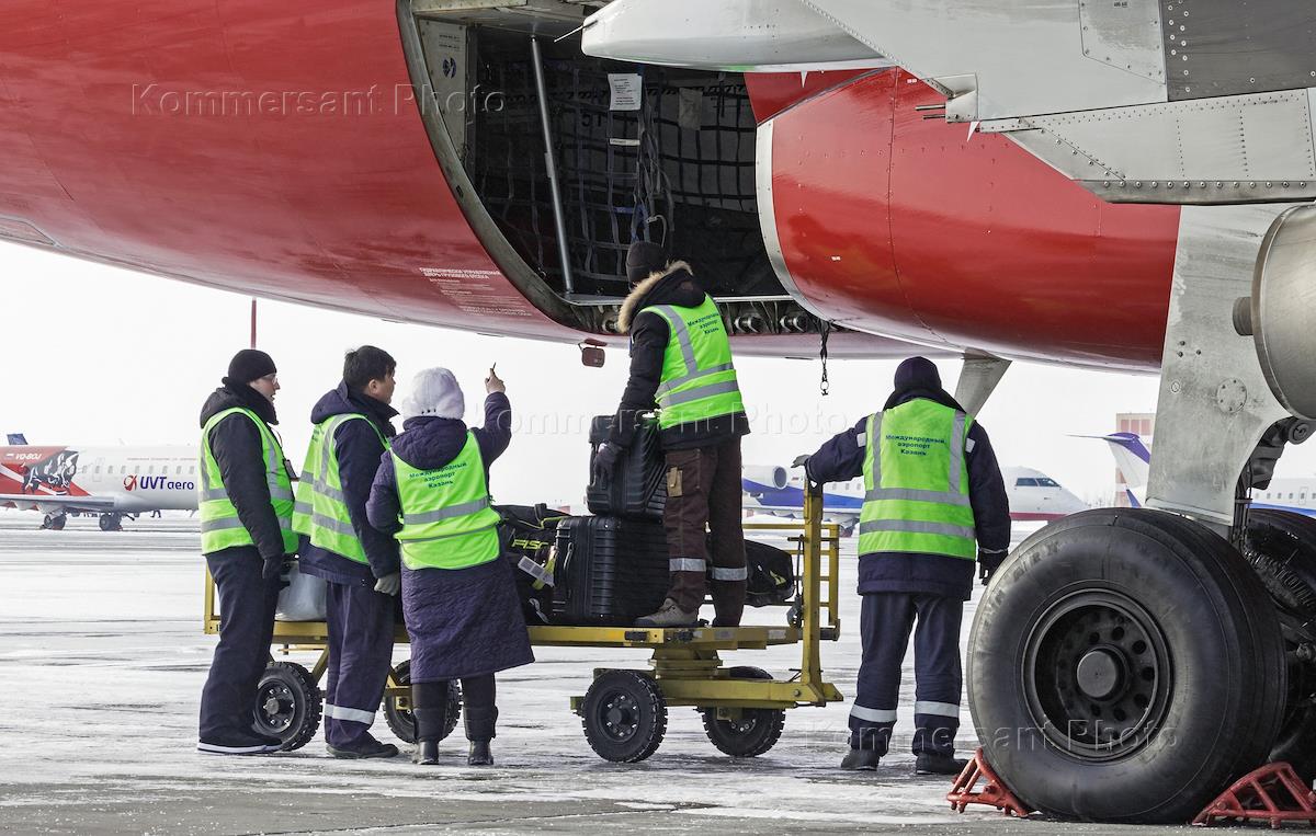 Жанровая фотография. Пассажирский самолет авиакомпании Rossiya Airlines перед вылетом.