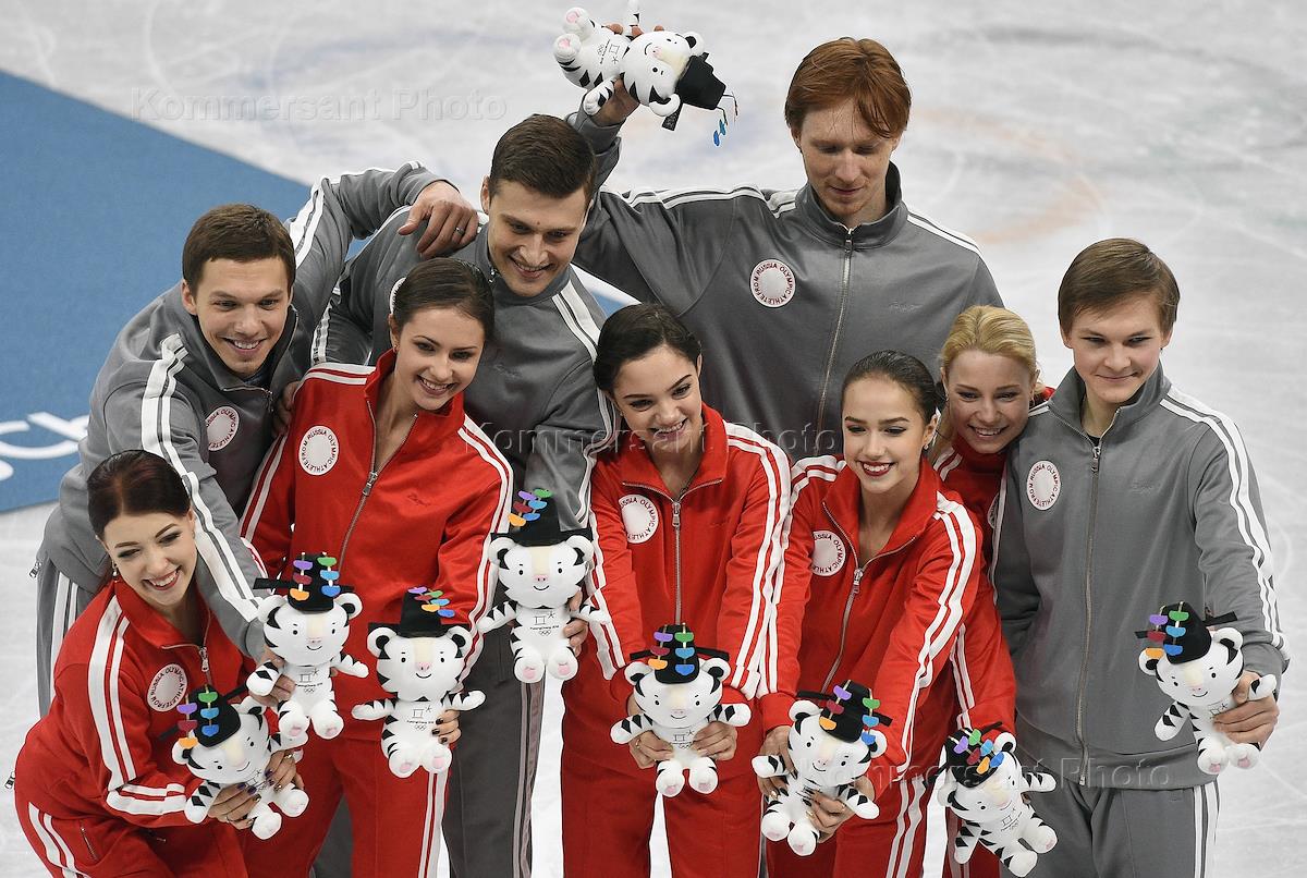 XXIII Зимние Олимпийские игры в Пхенчхане. Слева направо: российские фигуристы Михаил Коляда,…