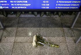 Цветы у электронного табло с расписанием рейсов самолетов в аэропорту "Домодедово". В деревне…