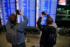 Фотографы у электронного табло с расписанием рейсов самолетов в аэропорту "Домодедово". В деревне…