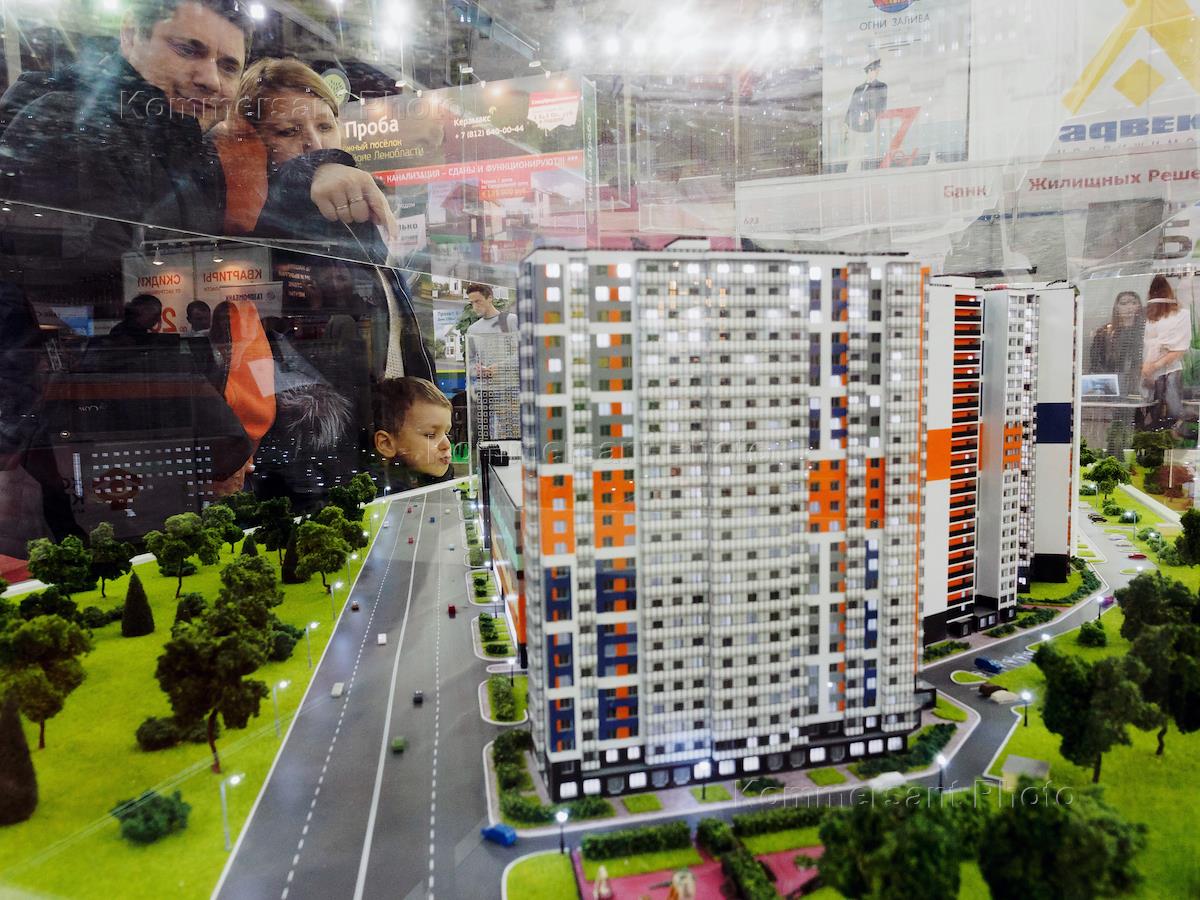 Выставка "Жилищный проект". Макет многоэтажного жилого дома.