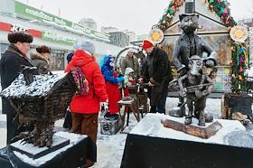 Празднование Масленицы. Декоративные украшения, установленные в рамках фестиваля "Московская…
