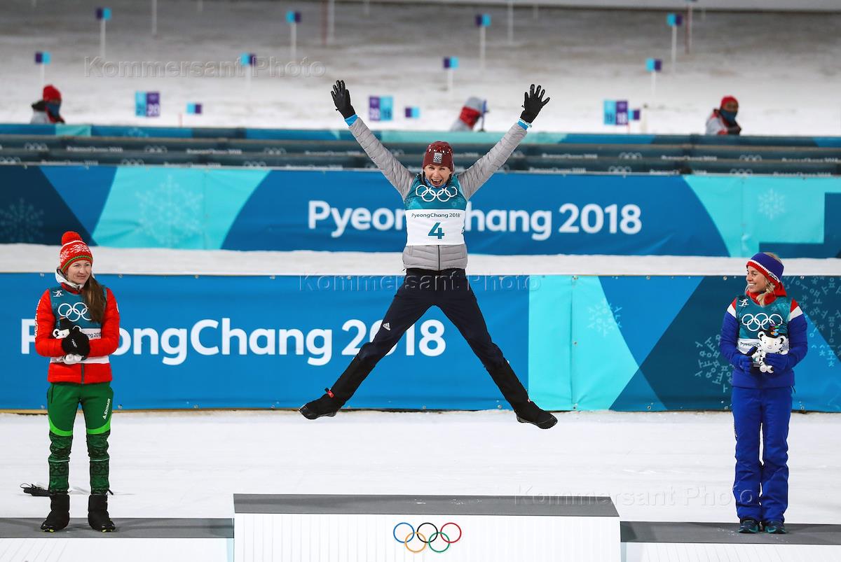 XXIII Зимние Олимпийские игры в Пхенчхане. Биатлон. Женщины. Масс-старт. Церемонии награждения на XXIII зимних Олимпийских играх в Пхенчхане.