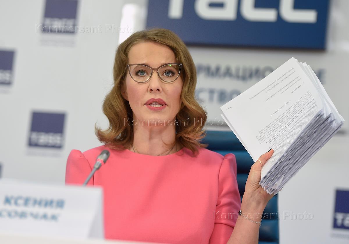 Пресс-конференция кандидата в президенты России от партии "Гражданская инициатива" Ксении Собчак в пресс-центре ТАСС.