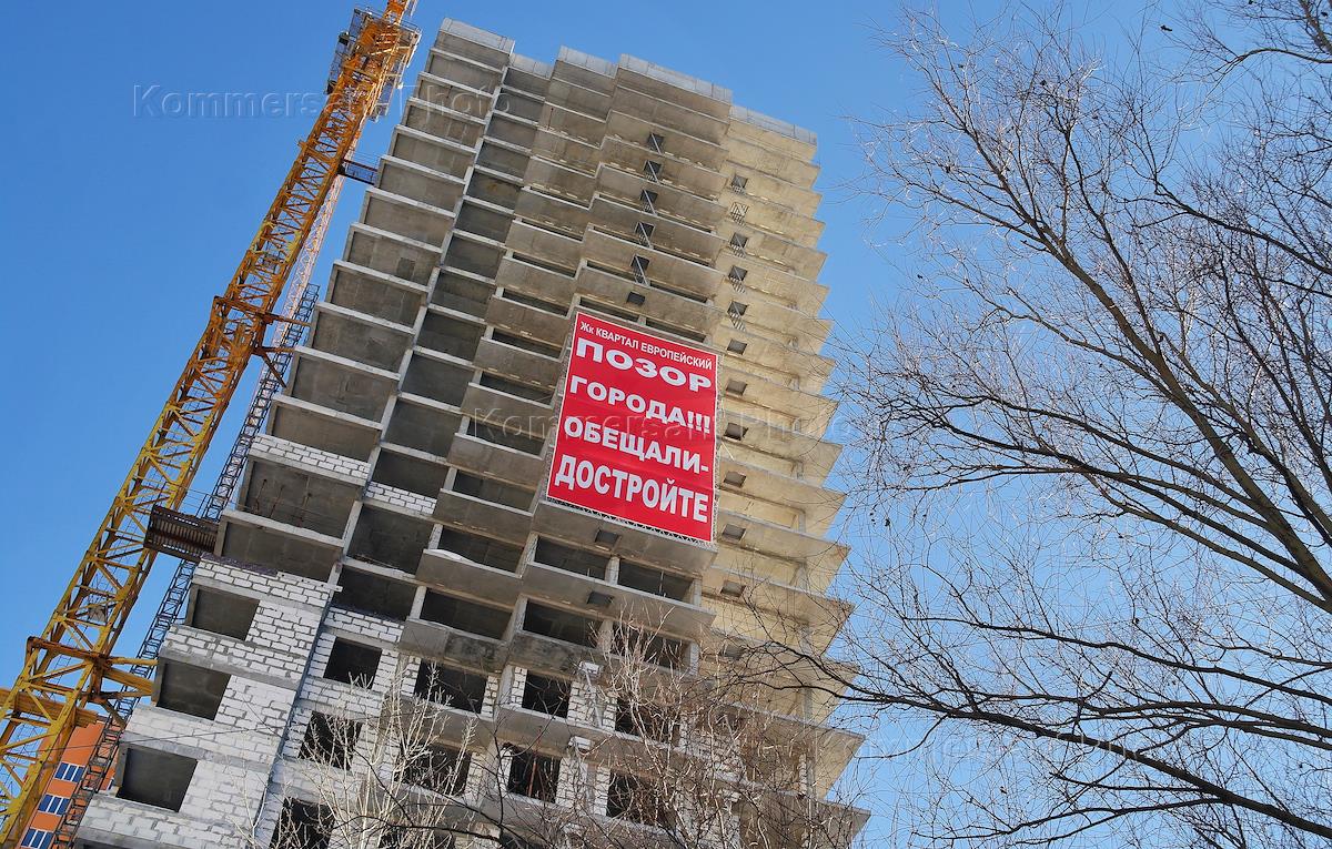 Баннер, вывешенный в виде протеста против замораживания строительства ЖК "Европейский".