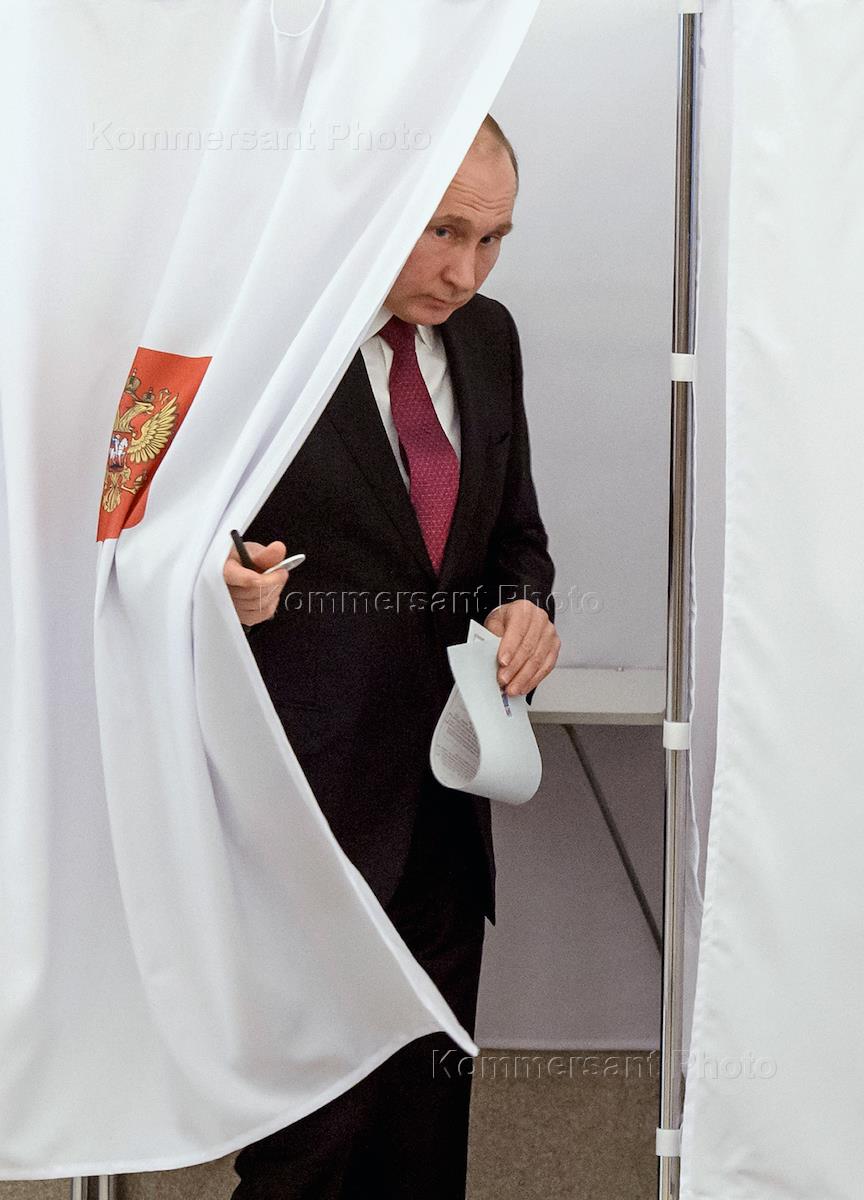 Выборы президента России. Президента России Владимир Путин на избирательном участке №2151 в Президиуме РАН.