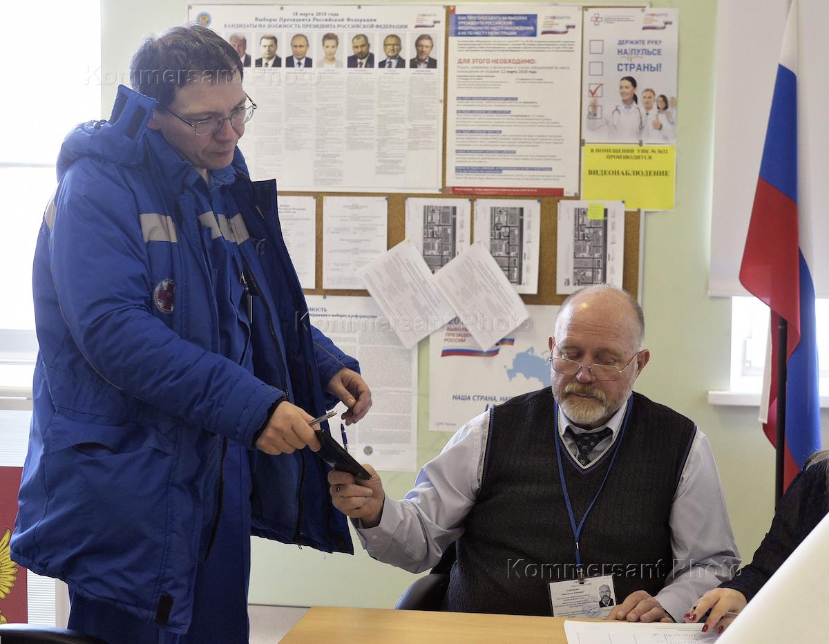 Выборы президента России. Избиратели на избирательном участке в Городской клинической больнице им.…