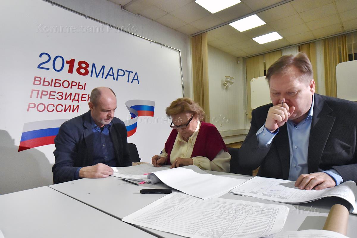 Выборы президента России. Подсчет голосов на избирательном участке №39 в Замоскворечье.