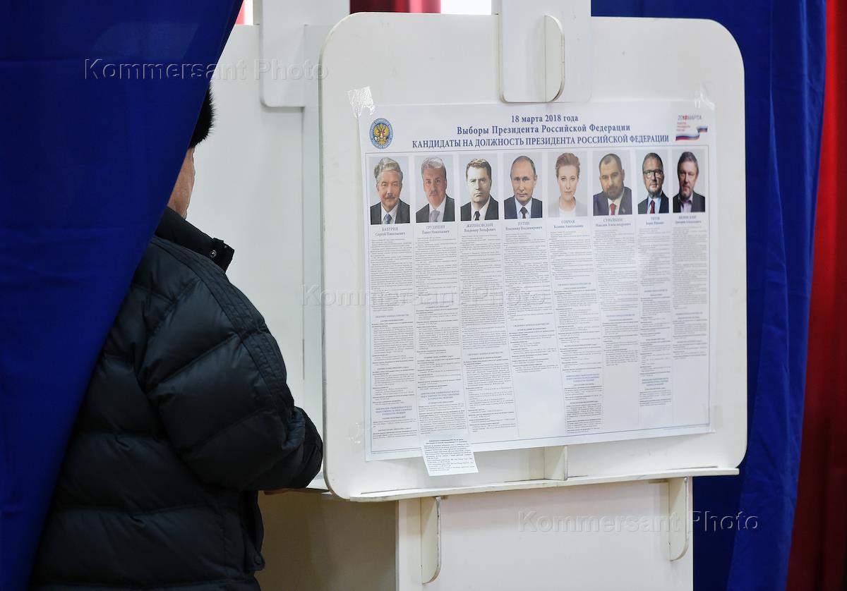 Выборы президента России. Избиратели во время голосования на избирательных участках 2063,2064,2065 в…